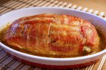 Pieptul de pui se toaca marunt, apoi se amesteca impreuna cu morcovul tocat marunt, usturoiul pisat, oul, patrunjelul verde tocat, sare si piper dupa gust. Sarea se pune mai putina decat de obicei, pentru ca baconul e destul de sarat. Din feliile de bacon se face o impletitura patrata. Se pune...