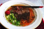 Preparare: particularitatea acestei supe este ca legumele se aseaza crude in farfurie taiate foarte fin, urmand sa fie gatite de supa clocotita turnata peste ele. Carnea de vita se taie bucati foarte fine, atat de fine cat reusiti sa le taiati si se rumenesc putin la foc viu intr-un ulei cu punct...