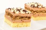 Blatul: se mixeaza ouale intregi cu zaharul si vanilia pana isi dubleaza volumul. Se adauga nuca macinata si ciocolata rasa, apoi faina si amidonul date prin sita si se amesteca cu o paleta usor pana se omogenizeaza bine compozitia. Se toarna in tava 25/35 cm tapetata cu hartie de copt si...