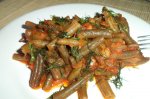 Adaugam bobite de mustar, sare si piper dupa gust, fasolea verde (congelata), punem 1/2 cana cu apa si lasam sa fiarba la foc potrivit pana fierbe fasolea si...