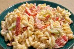 Fierbeti pastele si le scurgeti. Taiati legumele in forma dorita, preferabil mai mari. Nu e obligatoriu sa puneti exact ceea ce am scris eu. De exemplu, daca puneti ardei numai de o culoare, nu e nimic. Schimba doar aspectul, nu si gustul. Puteti pune de asemenea, mai multe sau mai putine...