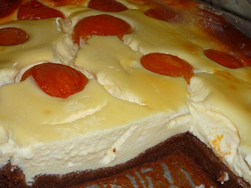 Brownies cheesecake cu caise