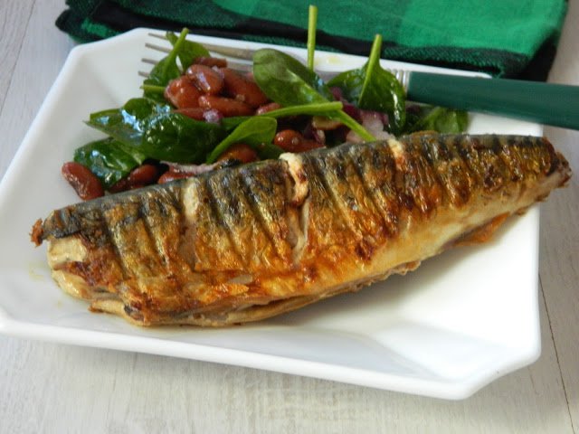 Macrou la gratar cu salata de fasole rosie