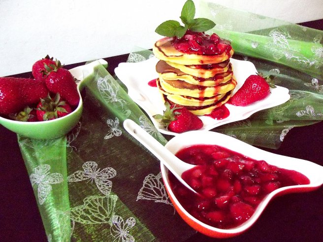 Pancakes cu jeleu de căpşuni şi coacăze roşii-1