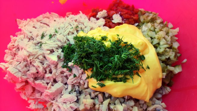 Salata cu piept de pui, ciuperci si maioneza