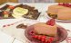 Cheesecake cu ciocolata, bezea rosie si coulis de zmeura