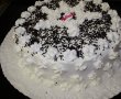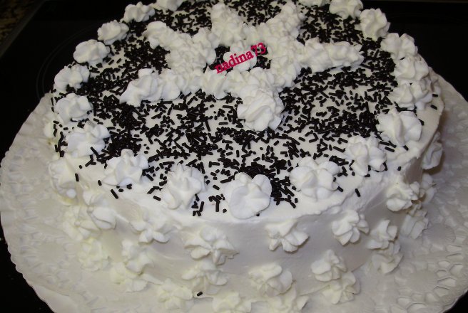 Se decoreaza cu frisca ,eu am pus 800 ml frisca lichida si am batut bine cu 5 linguri de zahar,dupa care am imbracat tortu(l-am facut pt o prietena de care a venit in concediu din romania MAGDA-moldova)asa ca abia maine voi putea sa pun sectiune taiata cand il va taia ea.