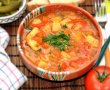 Ardeii se spala, se invelesc in folie de aluminiu si se coc in cuptor. Daca vreti puteti folosii si ardei cruzi. Copti se scot din folie si se lasa la racit.Apoi se curata, se spala si se taie ceapa, morcovii, tijele de sedano/telina, zucchinele/dovlecelul si cartofii.