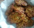 Când amestecul este omogen, se ia câte o lingură încărcată de compoziție, se pune în uleiul încins și se netezește ușor, în strat de maxim 1 cm grosime. Se dă forma dorită (rotundă, sau ovală). Se lasă șnițelele la prăjit, la foc mic, până ce prind o crustă rumenă, după care se întorc pe partea cealaltă, ca să se rumenească la fel.