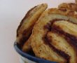Taiati aluatul astfel impaturit in fasii late de 1 cm (se va obtine o forma de ochelari sau palmieri :)) si asezati-le in tava, intr-o parte (pentru a se putea desface in timpul coacerii), la distanta unele de altele, pentru a avea loc sa creasca.