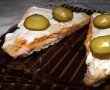 Feliile de paine se ung cu crema de branza. Se pun feliute de cascaval, bacon sau sunca, se unge cu gulas, se pune si cealalta felie de paine unsa cu branzica. Dam sandvisul la aparat pt 2-3 minute. Asa cald il mai ungem cu crema de branza si servim cu castraveciori murati.