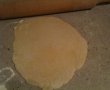 Batem 2 oua, adaugam un praf de sare si adaugam faina pana se formeaza un aluat elastic .